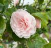 Buschig aufrechter, kompakter, reich blühender Strauch oder kleiner Baum. Blätter bis 8 cm lang, breit eiförmig, glänzend dunkelgrün. Blüten dunkelrot, silbrig überhaucht, rosenförmig bis vollständig gefüllt, schwärzlich gefärbter Spitze. Winterhärtezone 8