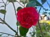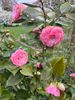 Buschig aufrechter, kompakter, reich blühender Strauch oder kleiner Baum. Blätter bis 8 cm lang, breit eiförmig, glänzend dunkelgrün. Blüten dunkelrot, silbrig überhaucht, rosenförmig bis vollständig gefüllt, schwärzlich gefärbter Spitze. Winterhärtezone 8