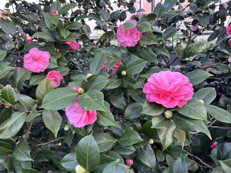 Im Moment blühen die drei großen, bis über 200 Jahre alten Kamelien, das Gros der denkmalgeschützten Kamelien wird in den nächsten Wochen seine Blütenpracht entfalten.